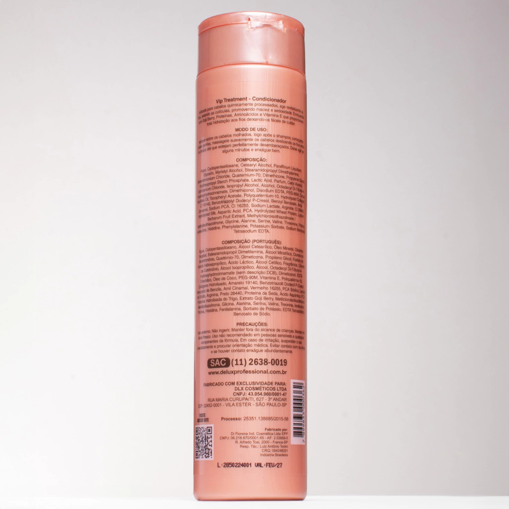 O Condicionador Tratamento Vip é indicado para cabelos quimicamente processados, revitalizando os fios e selando as cutículas. Este condicionador promove maciez e sedosidade, deixando os cabelos simples de cuidar. Enriquecido com Goji Berry, proteínas, aminoácidos e vitamina E, proporciona hidratação total aos fios.