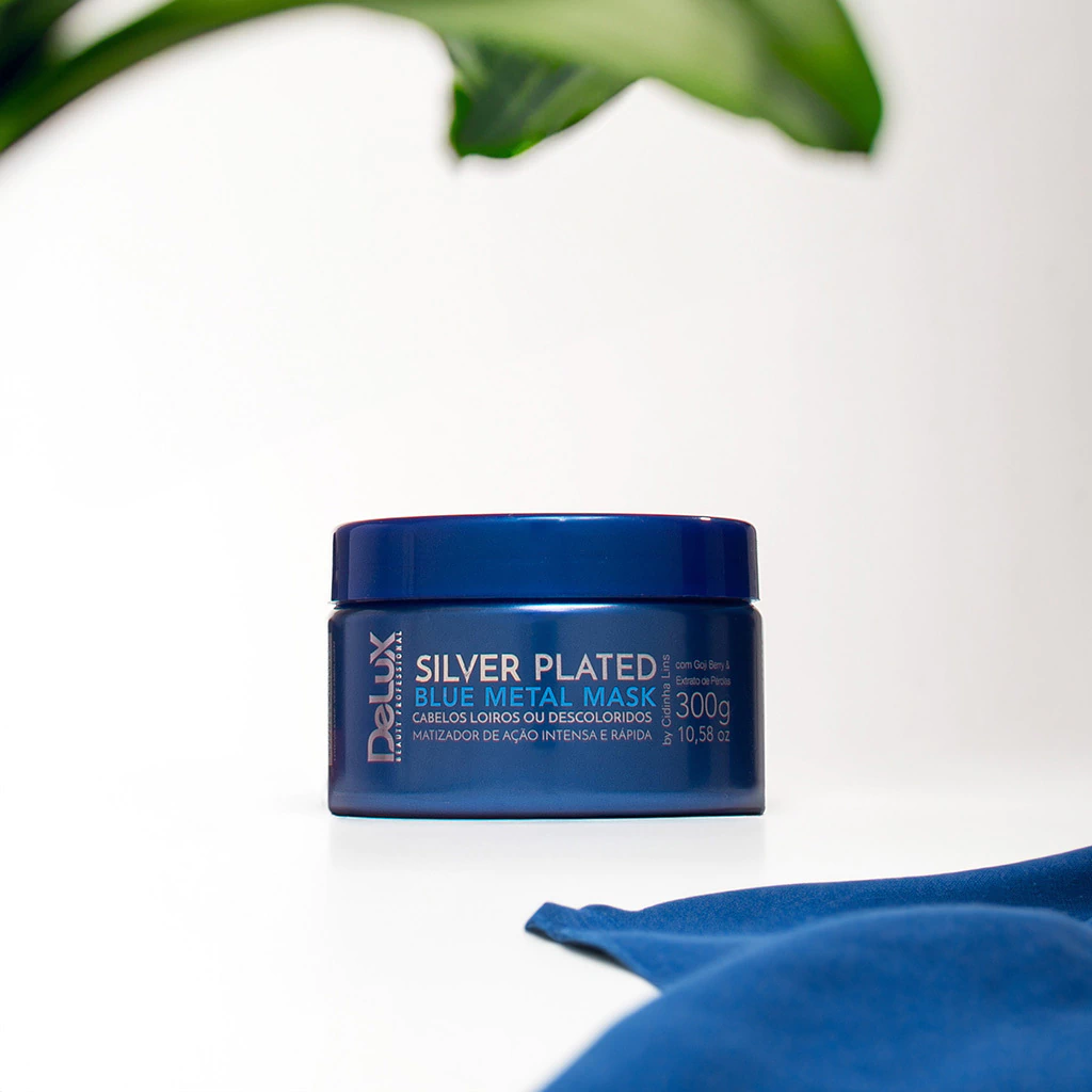 Transforme seus cabelos loiros ou descoloridos com o Kit Matizador Silver Plated Blue Metal Home, da Delux Beauty Professional.